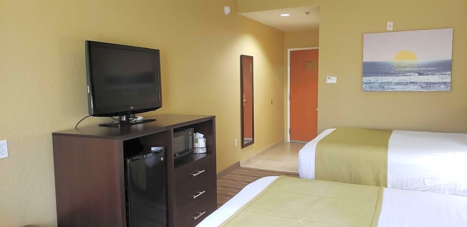 Key amenities include free parking, an outdoor swimming pool, complimentary Wifi, a free business center, and a 24-hour front desk. Other conveniences include non-smoking rooms, air conditioning, a spa tub, a kid-friendly buffet, and free beach umbrellas and beach chairs. Elevator access to upper floors is available, along with free toiletries and a bathtub.